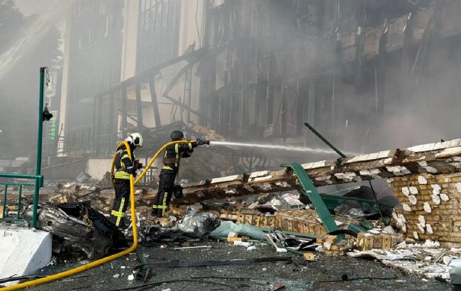 Financial Times перевірило зображення, які опублікувала ДСНС, де зафіксовані серйозні пошкодження будівлі та рятувальників, які гасять пожежу всередині.
